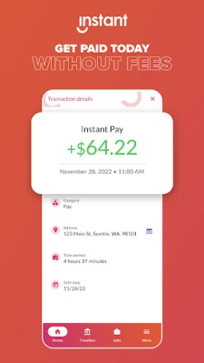 For verified employees who are paid by Instant, the Instant Financial app gives you daily access to your earned wages and/or tips for free. Your employer must offer Instant as a pay disbursement option in order to receive your pay on Instant.