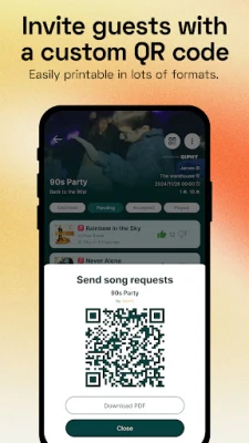 Guests don’t need to download the app or create an account. After scanning the QR code, they can instantly request songs via the web app.