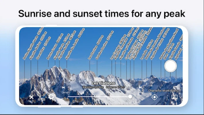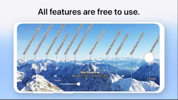 Point your Android device at the mountain and you'll see the peak's name, altitude, and distance!