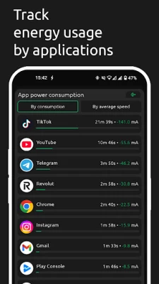 Battery One combines all essential features provided by battery management apps in a single, convenient tool. Now you don't need multiple applications to monitor battery health, charging speed, usage, and capacity—everything is here in one app.
