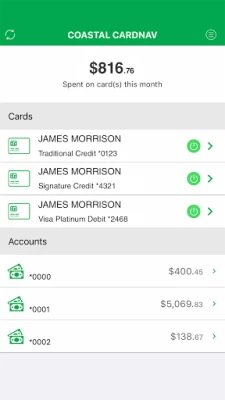 Coastal CardNav puts you in control of your Coastal debit and credit cards. With Coastal CardNav, you can turn your cards on and off, control where your cards can be used, receive alerts, set spending limits, and manage transactions. Download the Coastal CardNav app to manage your cards today!