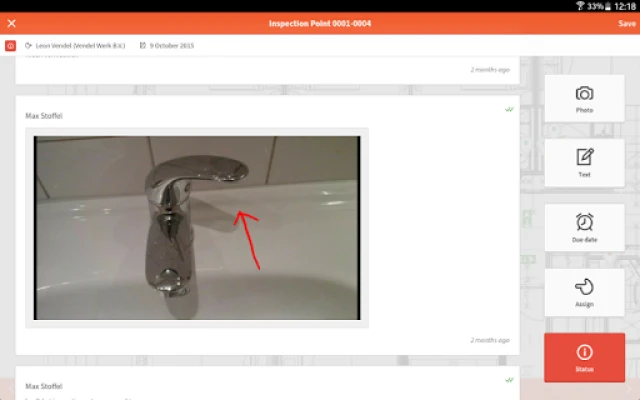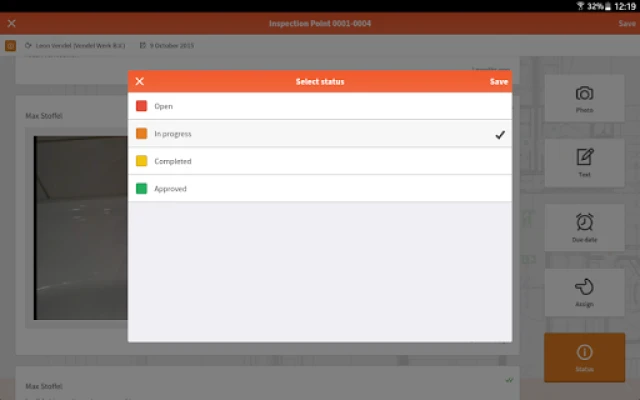 - Add photos, text, items, a status, a completion date, a room information to an inspection point