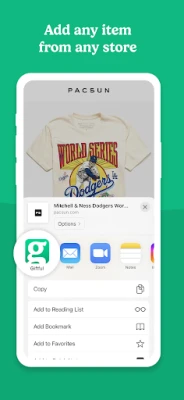 With Giftful, adding wishes is simple. Use our in-app browser or tap the share icon from any app to add gifts from any website. We'll automatically pull in the details—no copying and pasting needed. You can even add custom gifts, experiences, or cash fund requests.