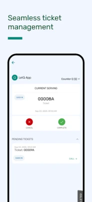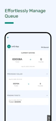 3. Manage with Ease: Use your phone to call the next customer, monitor queue status, and manage services in real-time.