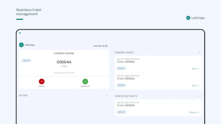 • Effortless Ticket Management: Customers get a ticket number with a single scan, reducing wait times and improving their experience.