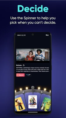 Can't decide what to watch between a few options? Use the SPINNER to help you pick! Indecisive with a friend? SWIPE together on choices and we'll let you know when there's a match!