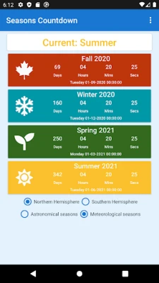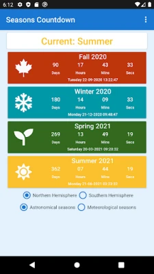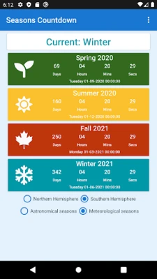 Free application to get the number of days, hours, minutes and seconds to the next seasons.